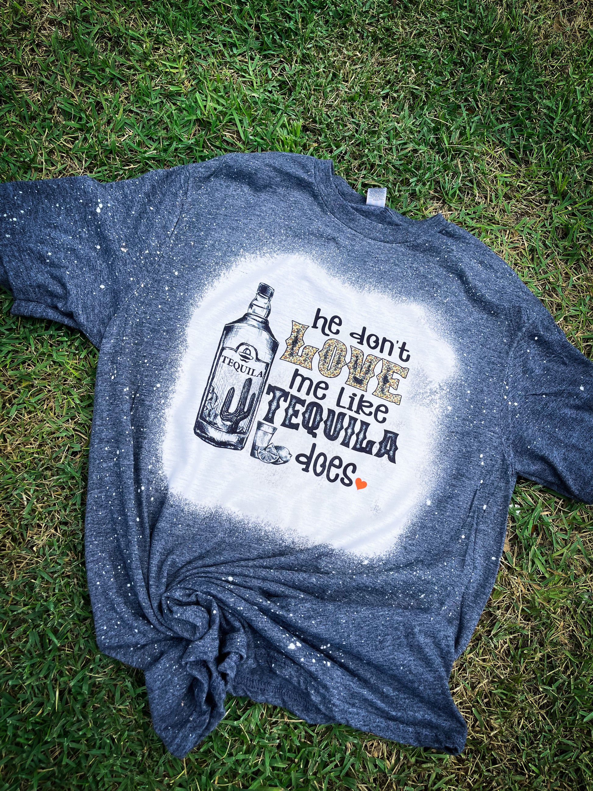 Each tee is hand bleached so no 2 will be the same.